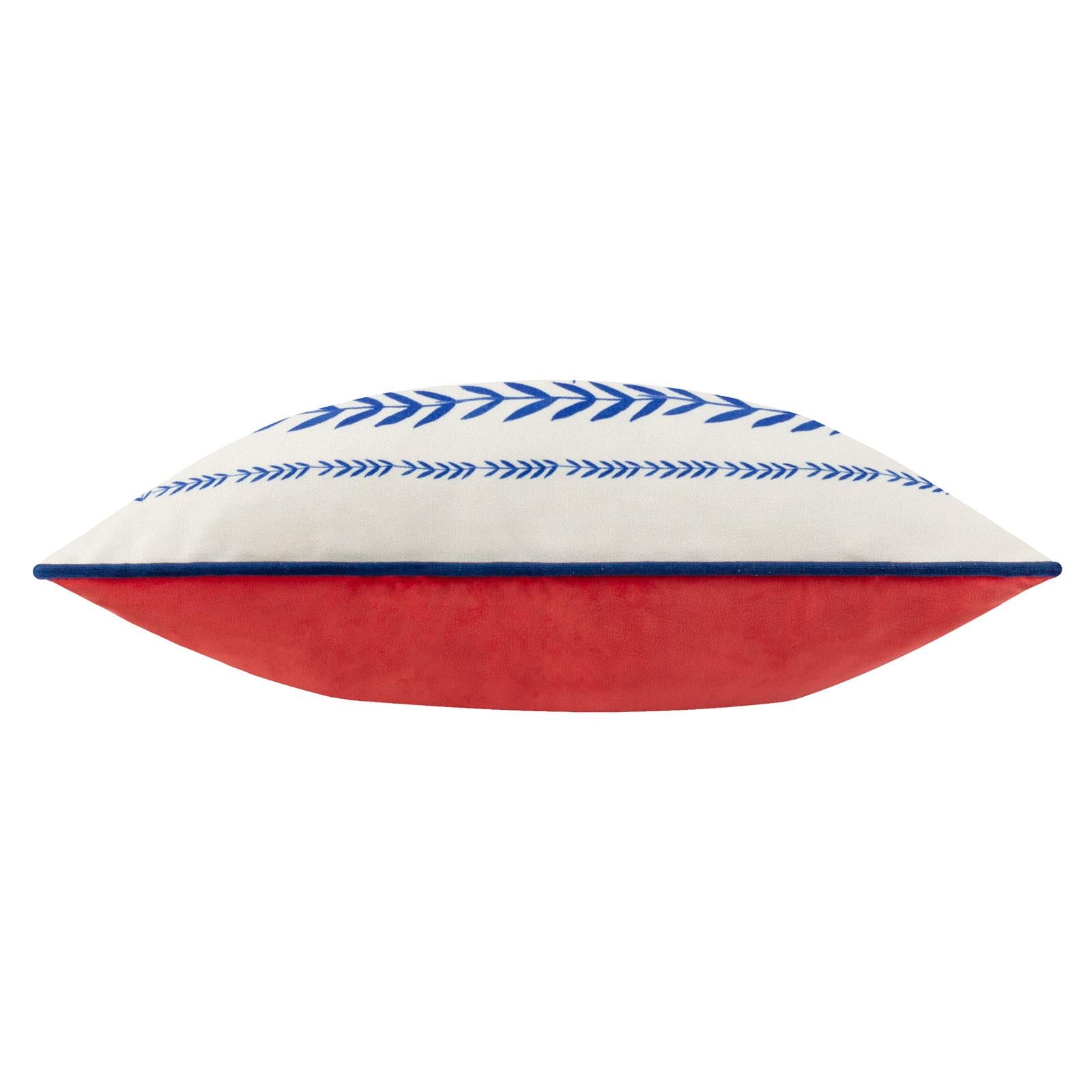 Imagine dipping your toes into the cobalt waters of the Aegean Sea, looking up to see perfect white villas dotted on the hillside, palms swaying in the breeze, and tiny shells washed up on the crisp white sand. The Frieze cushion cover features a printed design of symbols and icons inspired by travels around the Greek islands. Complete with a contrasting soft velvet reverse and complementing piped trim, this cushion is a fantastic way to add abstract art to your bedroom.