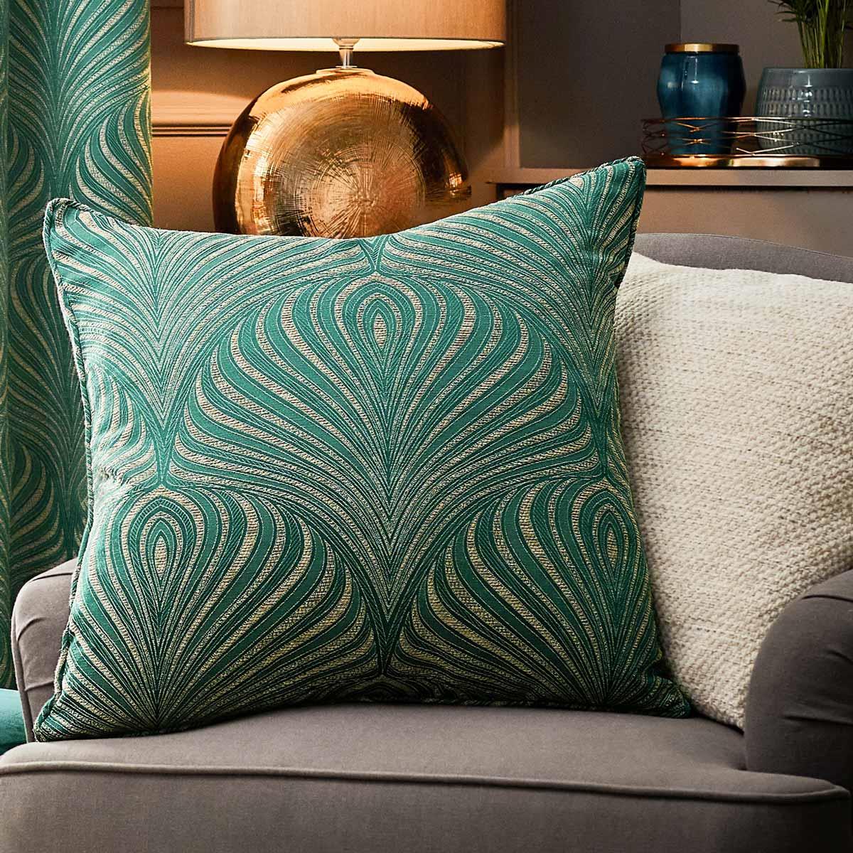 Elevate your home decor with the luxurious Gatsby jacquard cushion cover, an exquisite piece inspired by the elegance of the Art Deco and Nouveau movements. This stunning design features geometric patterns intricately woven with sparkling gold threads on a sumptuous jacquard fabric, making it a perfect addition to any modern living space. Available in a range of decadent jewel tones, this cushion cover offers versatility and style.