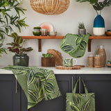 Discover the perfect blend of style and functionality with our luxurious kitchen textiles inspired by traditional Nigerian wax print. Featuring bold palm leaves beautifully illustrated against a geo triangle backdrop, these products are designed to bring vibrant prints and colours into your culinary space.