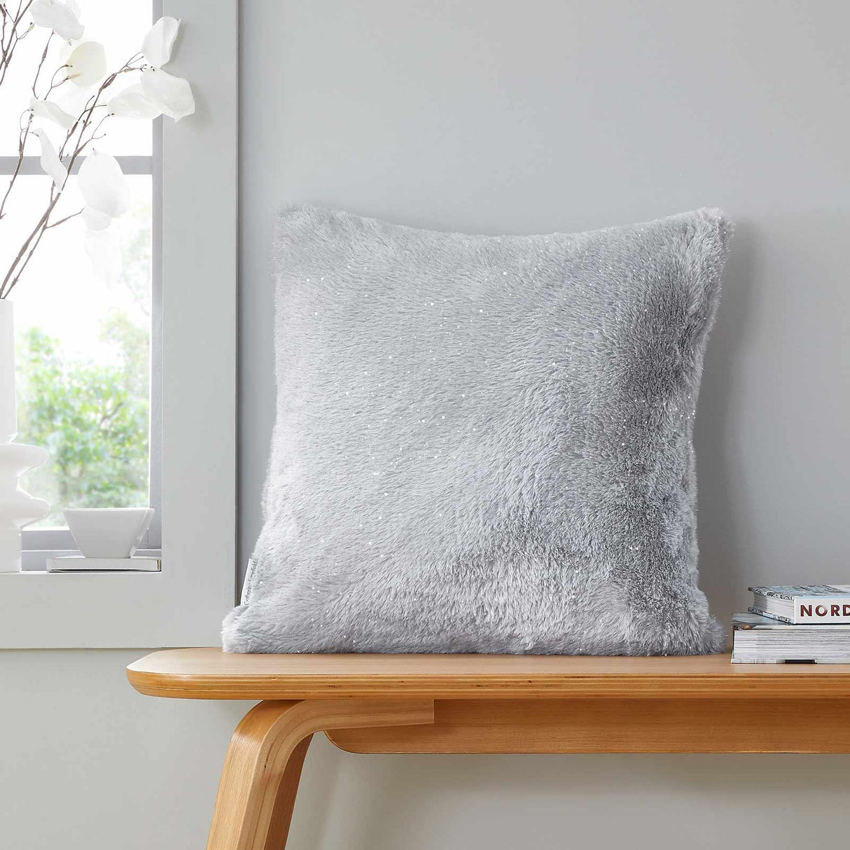 Indulge your space in the sumptuous softness of this glamorous cushion, crafted with cosy and warm faux fur material. Designed to elevate your décor, it features a scattering of metallic fibres that add a subtle shimmer, bringing elegance to any room.