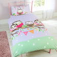 This lovely lilac design is the perfect way to add some sleepy style to any bedroom. Featuring a very cute family of sleeping owls snuggled up together on a tree branch. Bunting has been hung across the branches with the word "love" to complete the look.
