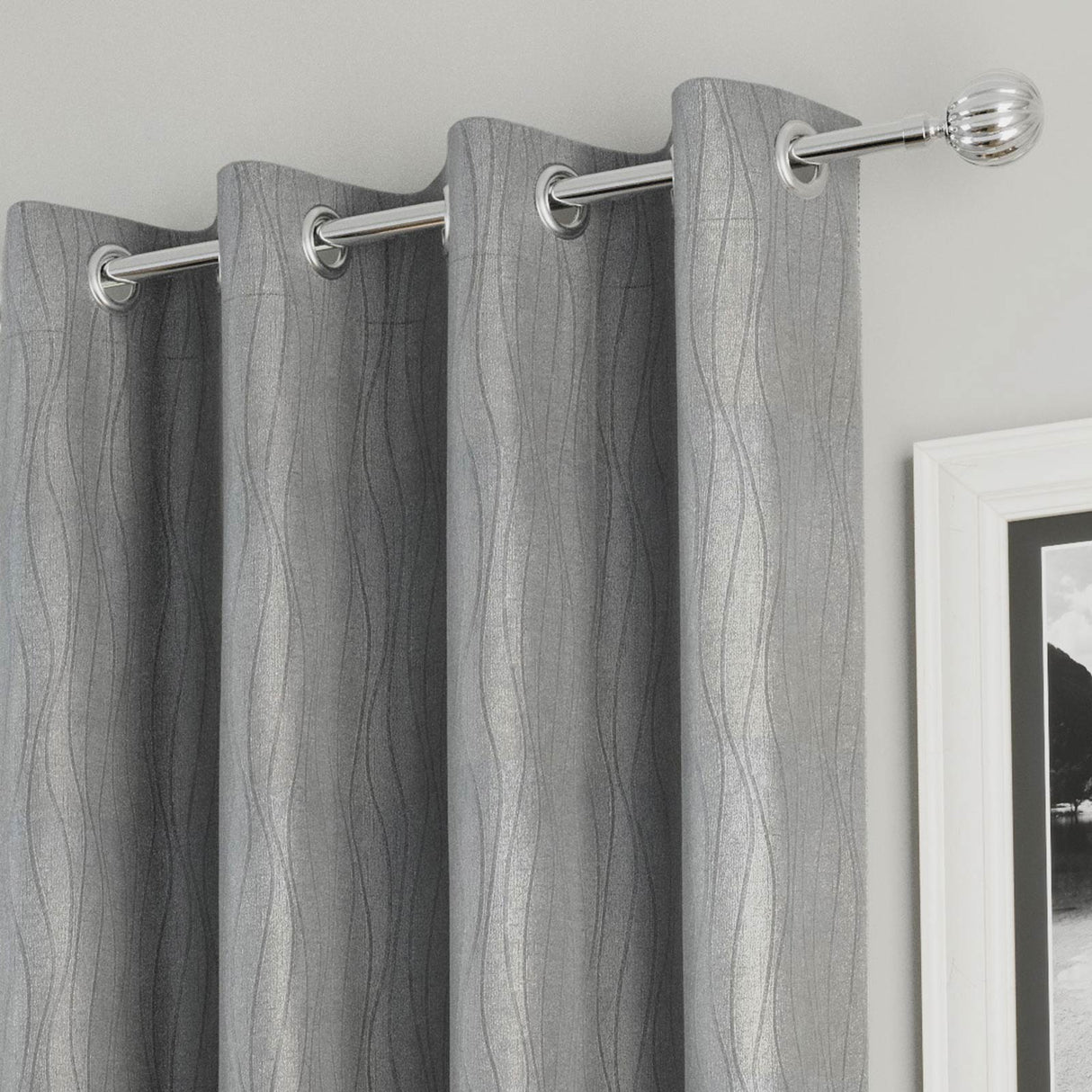 These Goodwood readymade curtains are a stylish and functional window covering that adds a touch of elegance to any room. It features a triple weave construction offering excellent blockout capabilities, helping to keep unwanted light and preserving privacy. The grey curtain is embossed with a horizontal wave design, giving it a distinctive and modern look. The eyelet header provides an easy and convenient way to hang the curtains making installation a breeze. Whether used in the living room, bedroom or any other space, the Goodwood range is the perfect choice for anyone looking for a practical but attractive window covering.