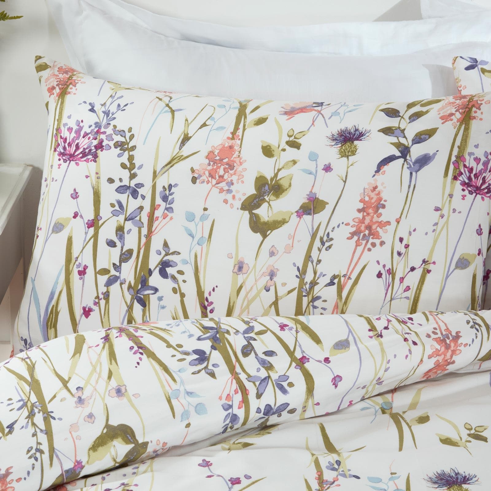 Pretty meadow flowers printed on a delicate cream ground will add colour to any room. A clever combination of pinks, greens and lavender shades will complement many home colour schemes. Printed both sides with matching cushions, curtains and accessories available.