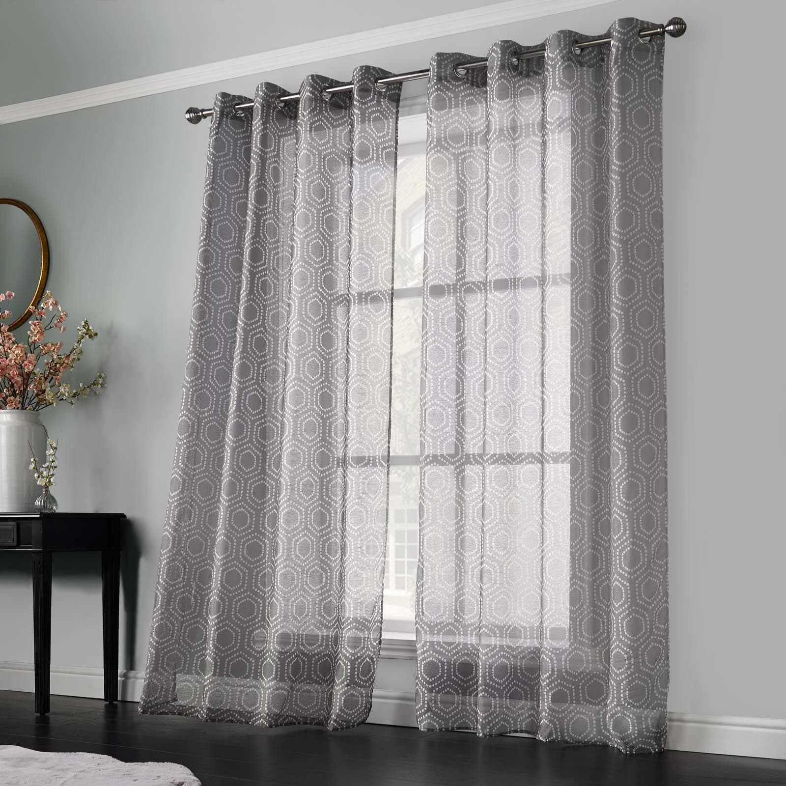 Helena Geometric Eyelet Voile Curtains Pair Grey by Alan Symonds