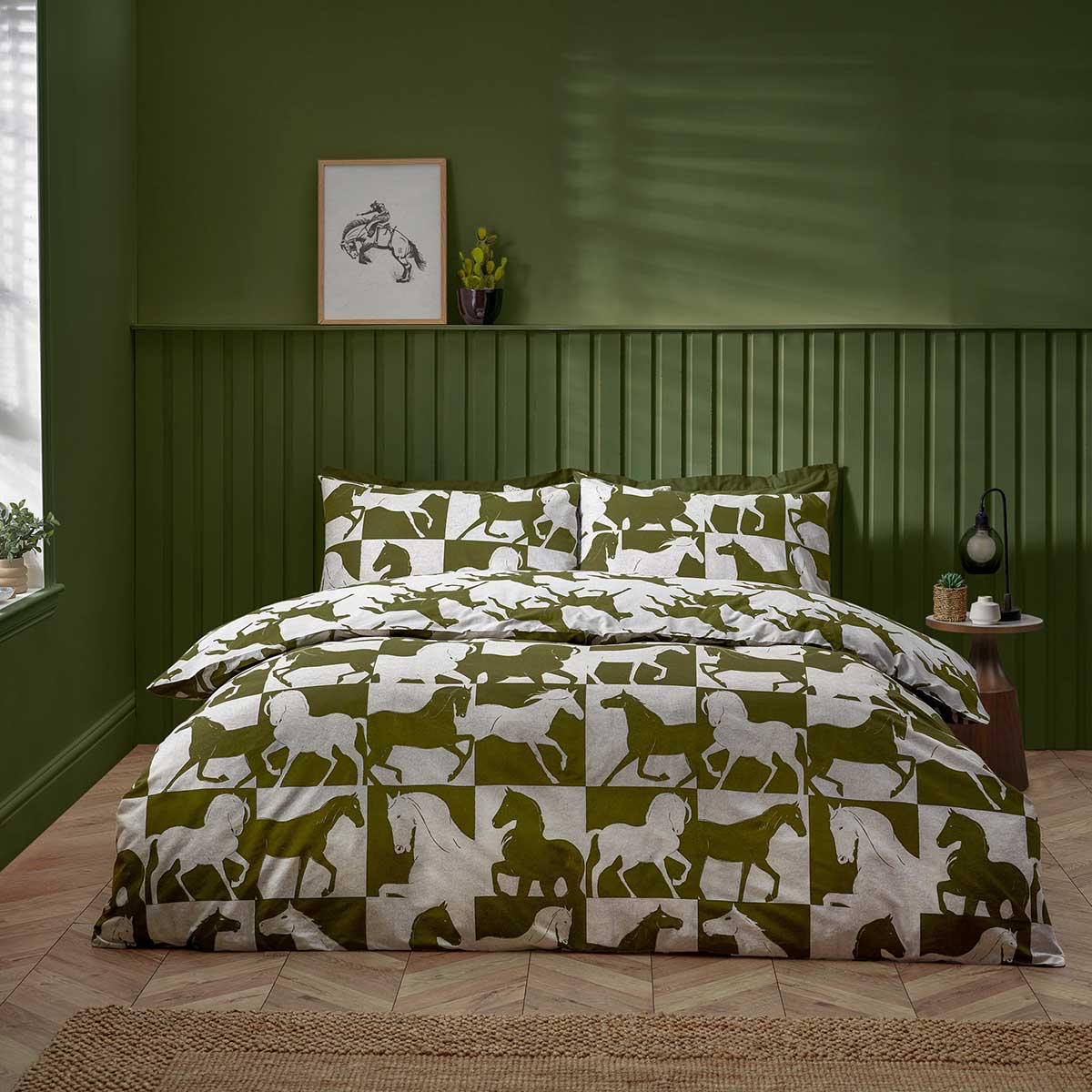 Transform your bedroom into a sanctuary of style and comfort with the Herve duvet cover, where the beauty of nature meets the artistry of design. Experience the joy of a restful night's sleep surrounded by the enchanting imagery of galloping horses, bringing a touch of serenity and elegance to your space.
