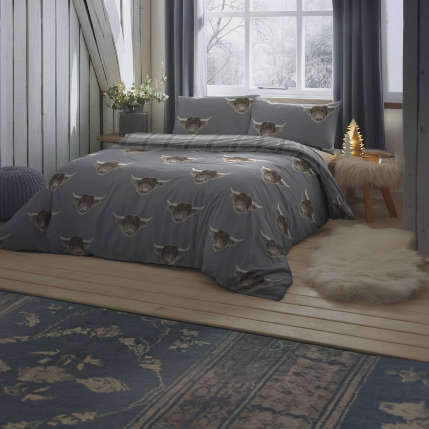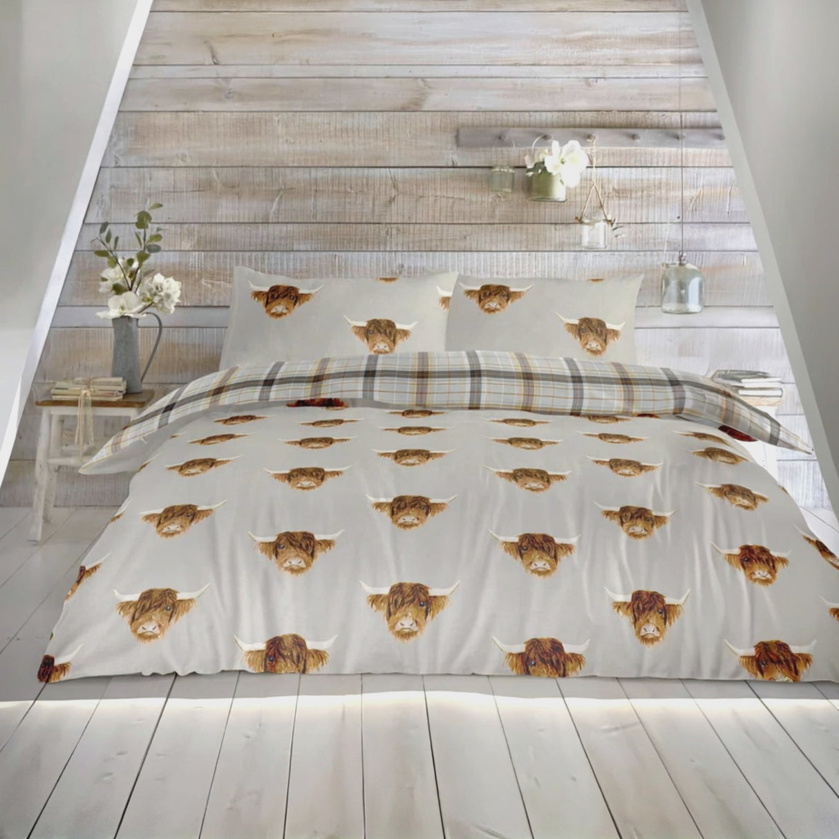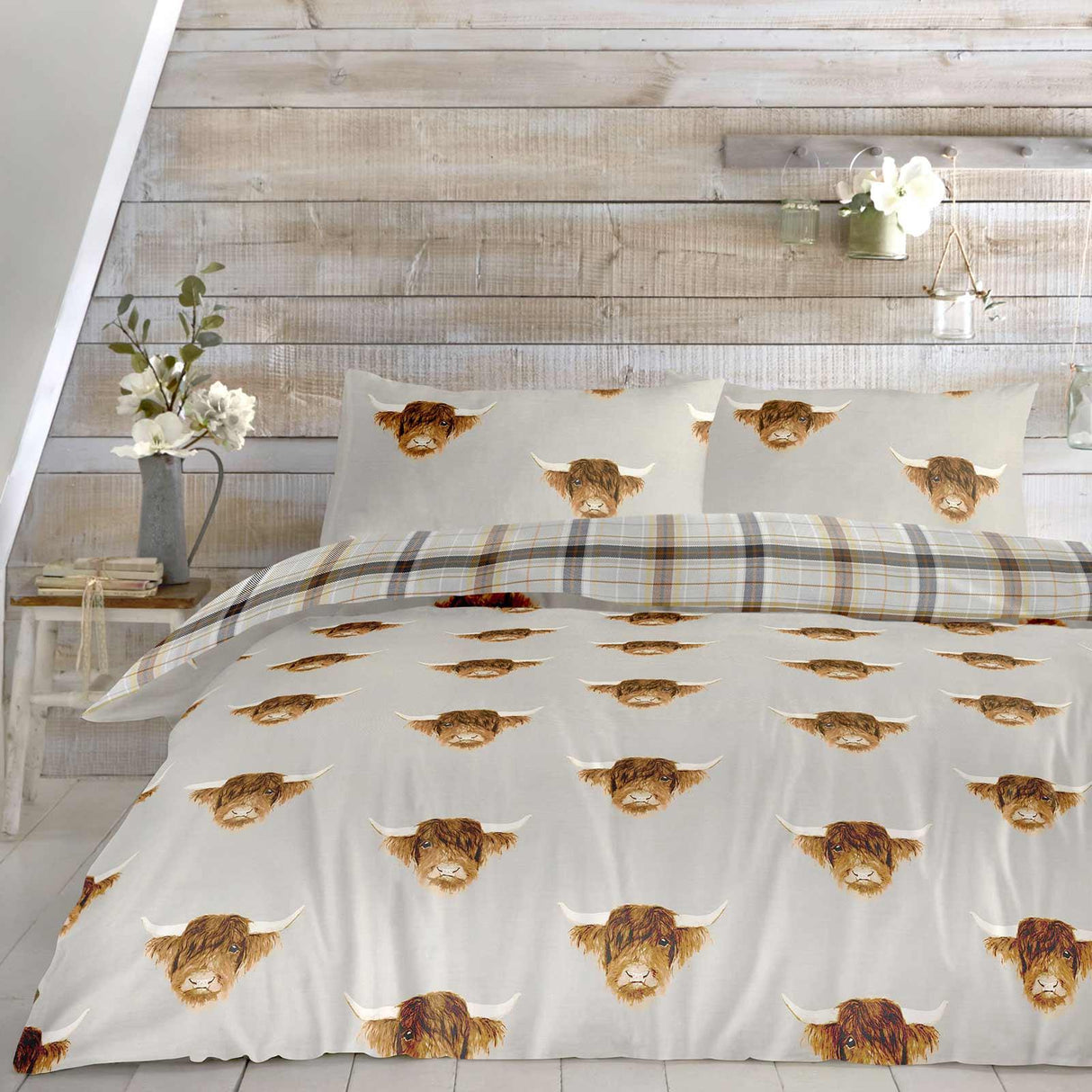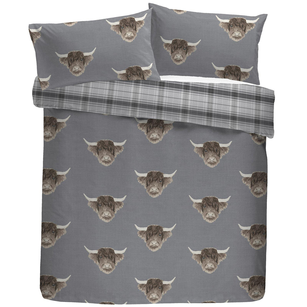 Transform your bedroom into a cosy haven with this delightful Scottish-inspired bedding set, perfect for cow enthusiasts. Crafted from easy-care polycotton fabric, this duvet cover set features a charming highland cow design that brings a touch of whimsy to your space. The reverse side showcases a classic highland tartan, adding a fun Celtic flair that complements any décor.