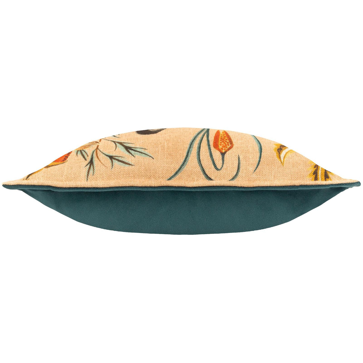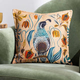 Inspired by heritage designs, this cushion cover adds a touch of charm to your soft furnishings. Printed on textured linen look fabric, a hand painted tropical bird perches amongst the bright florals. The natural toned background and velvet reverse contrast effectively highlight the beautiful deep teal and amber tones, which bring rich colours to your home decor.