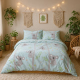Cute and cuddly Koala Fun duvet set with playful koalas climbing in the branches. Featuring soft shades of blue and green, this contemporary and fun print is sure to make you smile.