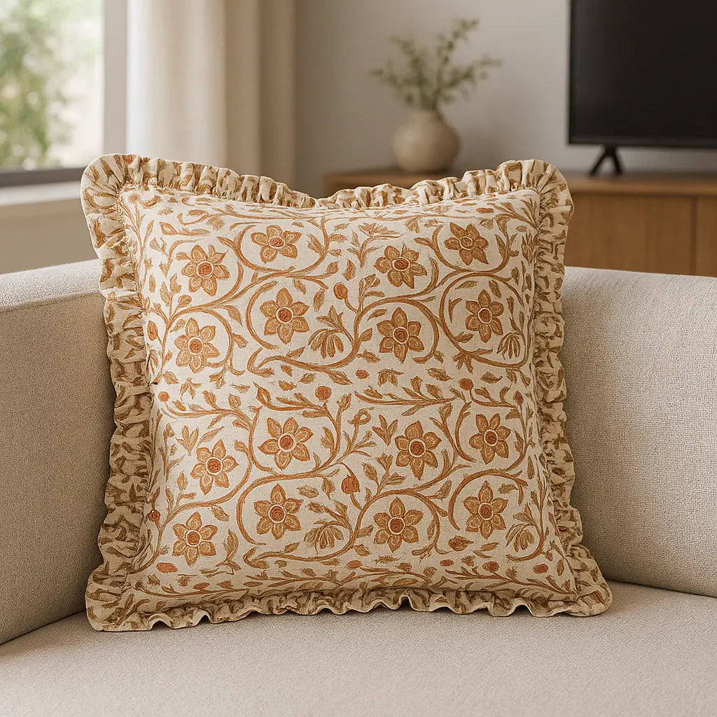 Transform your space into a haven of style and comfort with the Linen Filigree Printed Ruffle Cushion, where classic design meets relaxed refinement, making it a must-have addition to your home décor collection.