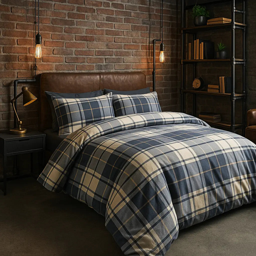 Transform your bedroom into a cosy retreat with this classic traditional check flannelette duvet cover set, crafted from 100% brushed cotton. The soft, inviting fabric ensures a warm and comfortable night's sleep, making it perfect for any season. Featuring a charming contrasting check reverse, this duvet cover set adds a touch of elegance and style to your bedding collection.