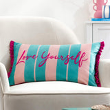 Love Yourself Striped Velvet Cushion Cover 12" x 20" (30cm x 50cm) by furn.