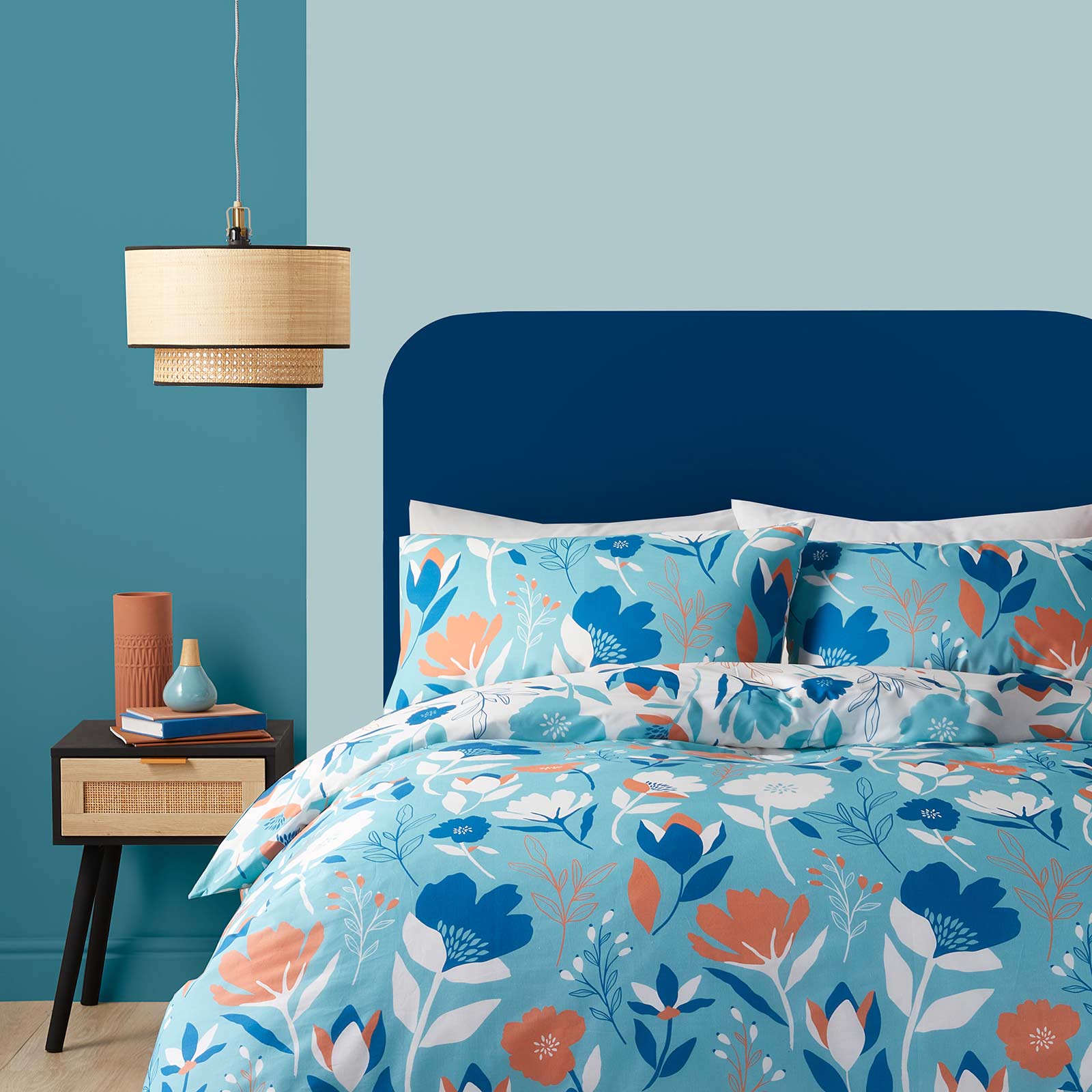This stunning, bold floral print is sure to enhance any bedroom. The easy care polycotton bedding set is fully reversible for two great looks in one with the reverse featuring the same print on a white background and comes complete with matching housewife pillowcases.