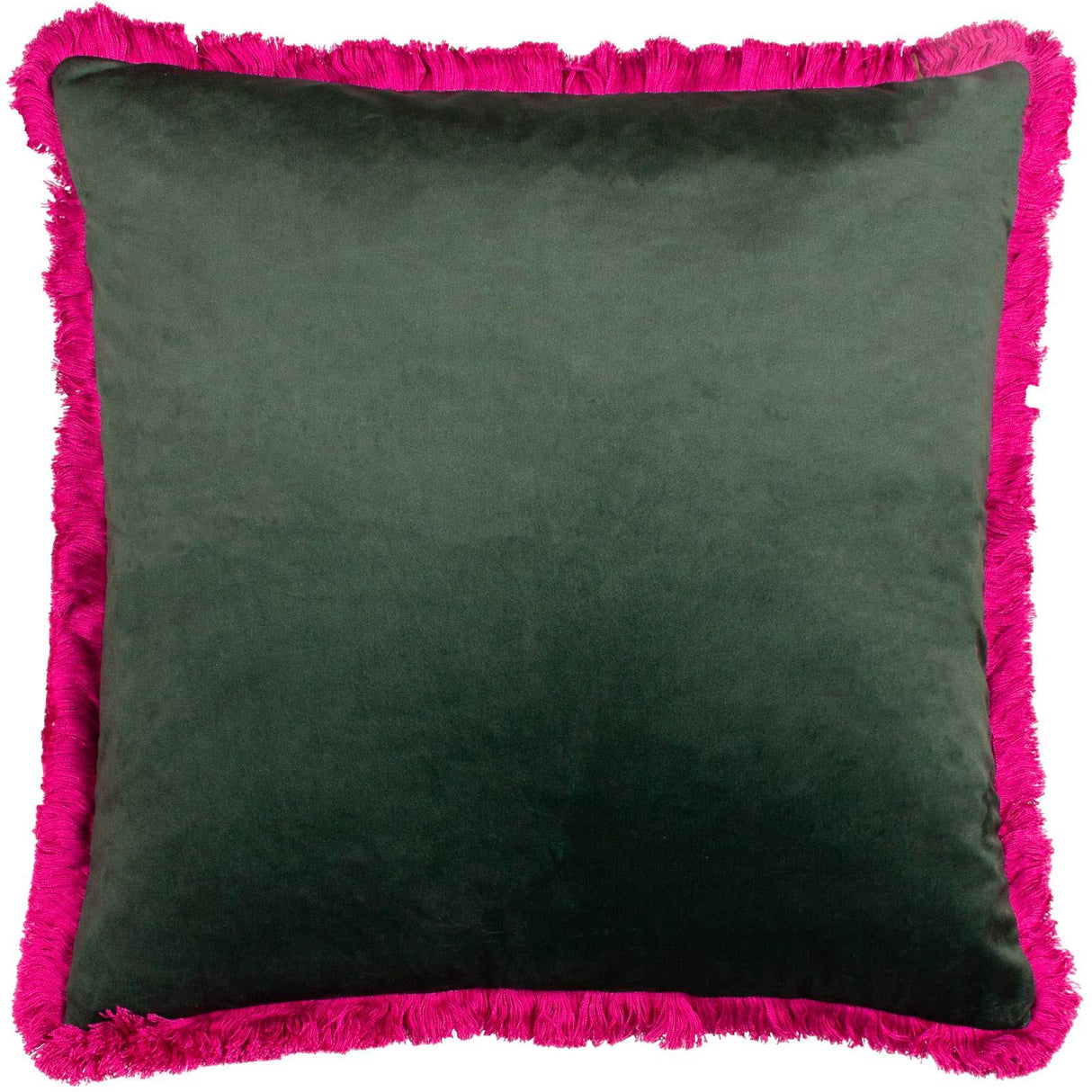 • Complete with an opulent contrast coloured fringe trim, plain luxurious velvet reverse and hidden zip closure