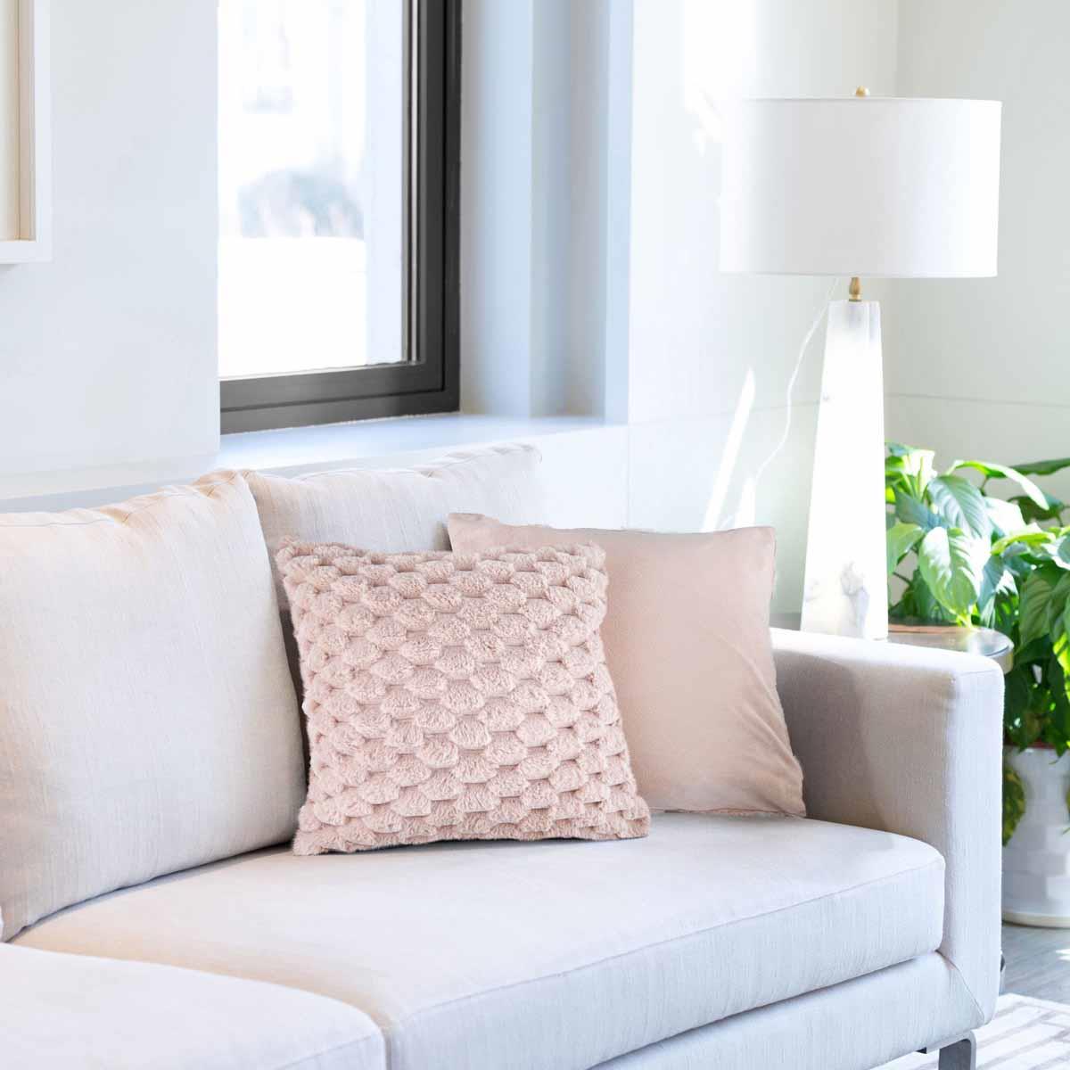 • Mix sizes: layer larger 22–24" cushions at the back with smaller ones in front for depth.