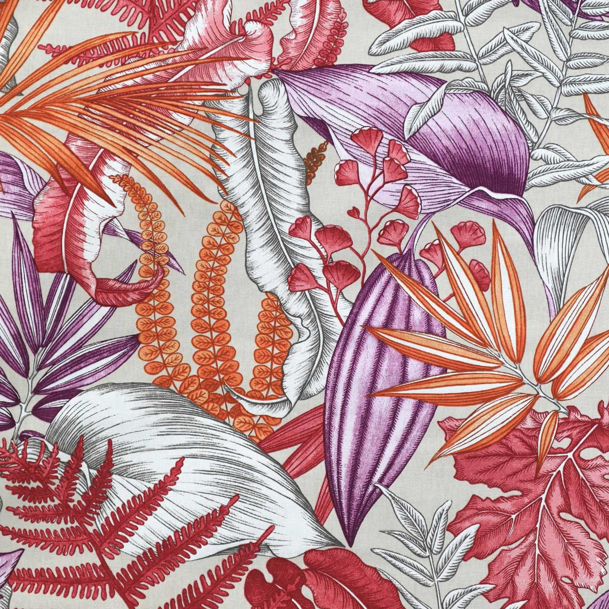 Feel like you have stepped into a rainforest with the Maldives Cassis curtains. With large tropical leaves, forest ferns and more this eye-catching print with rich blues, greens and orange will make a vibrant and colourful statement in any space.
