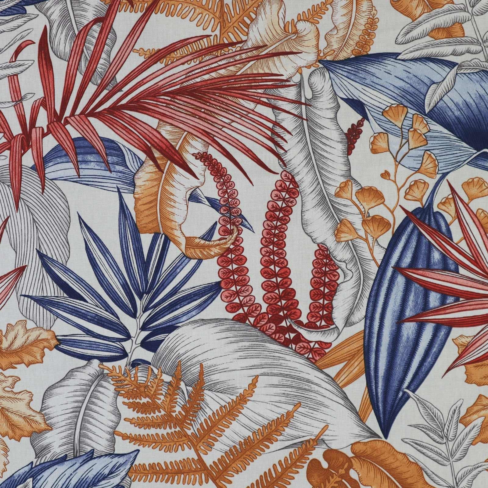 Feel like you have stepped into a rainforest with the Maldives Marine curtains. With large tropical leaves, forest ferns and more this eye-catching print with rich blues, greens and orange will make a vibrant and colourful statement in any space.