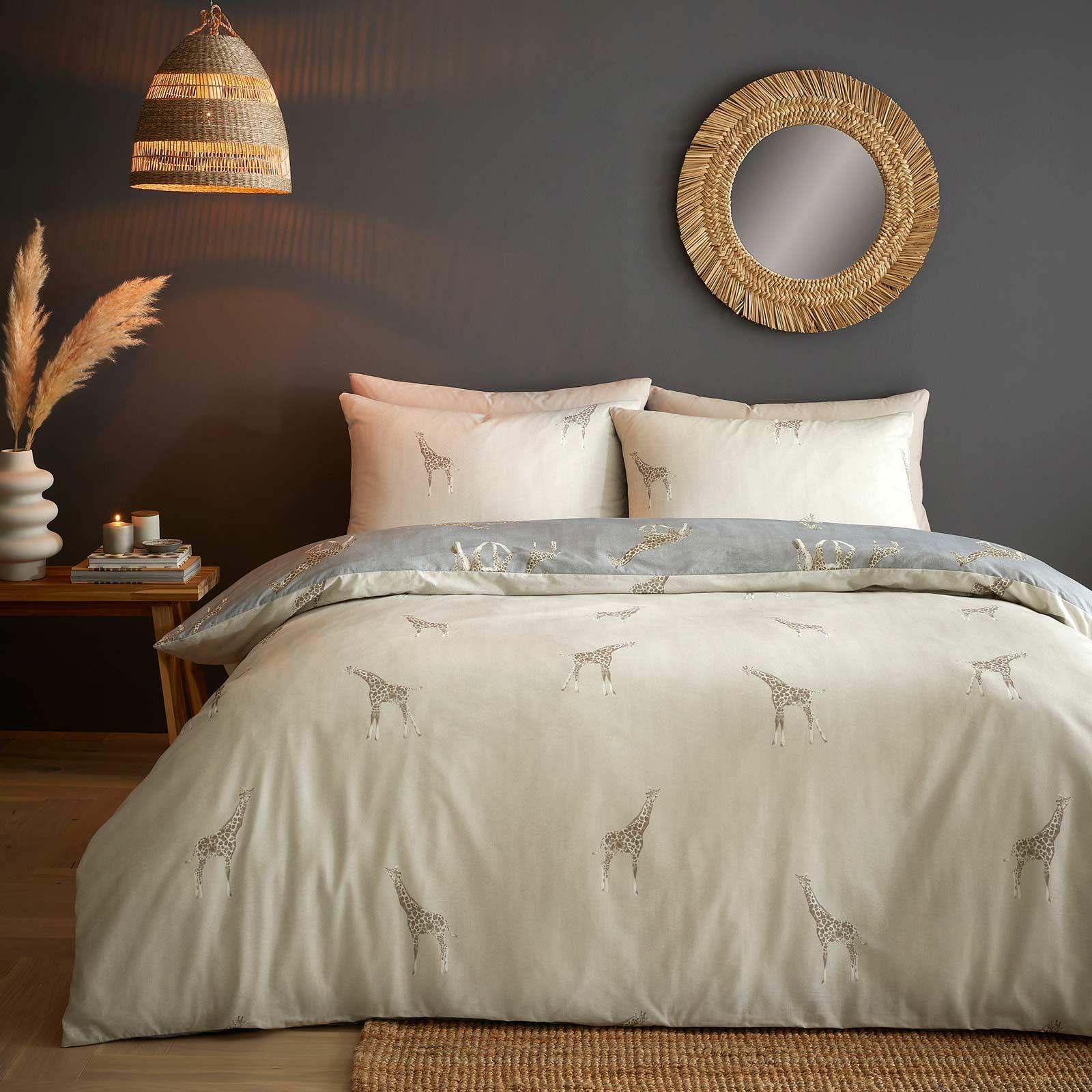 Who says bedding has to be serious? Transform your bedroom into a whimsical retreat with this fabulous printed duvet cover set featuring Milo the giraffe and his friends. Crafted from an easy-care poly cotton blend, this bedding is designed for comfort and style. The duvet cover is fully reversible, offering a delightful soft shade on one side and a beautiful linen tone on the reverse, allowing you to switch up your look effortlessly.