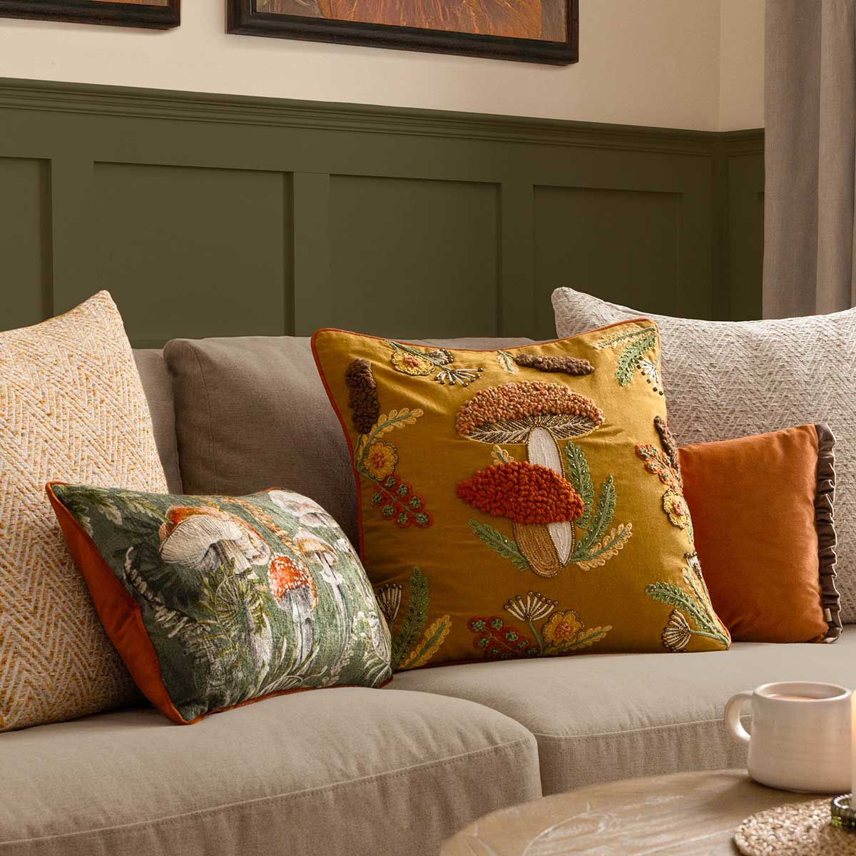 Transform your living space with the Mushroom Dell cushion, where artistry meets comfort, making it the perfect accessory for those who appreciate the beauty of nature in their home.