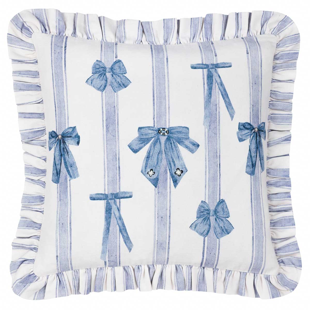 Elevate your home décor with the exquisite Noortje Ruffle Bows Cushion, a stunning piece that effortlessly combines sophistication and charm. Adorned with a delightful Parisian stripe and an elegant bow design, this cushion is crafted from luxuriously soft cotton, ensuring both comfort and style. The meticulous attention to detail is evident in the ruffled frill trim, adding a touch of whimsy and refinement to your living space.