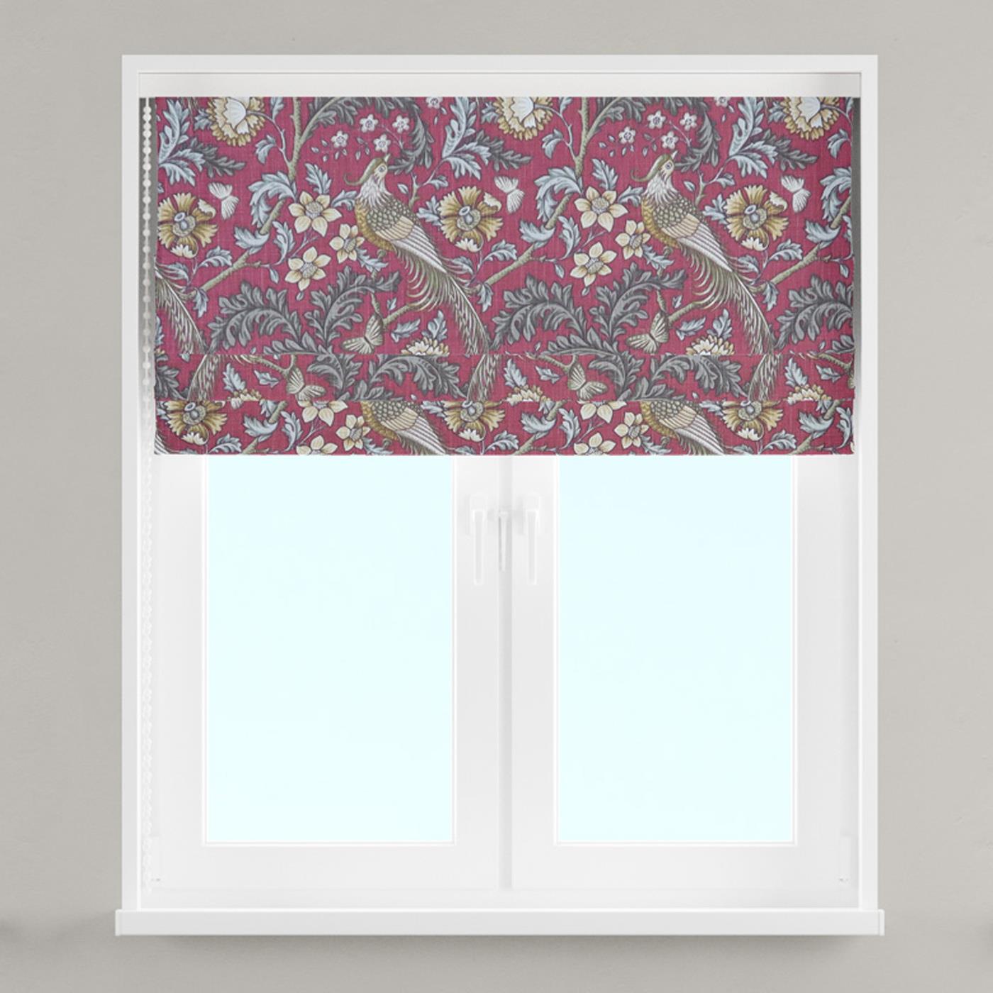 Oakmere Carmine roman blind is beautifully decorated in the extravagance and luxury of the Victorian era. This timeless floral and bird design with vibrant hues is eye-catching and excellent for freshening up the décor in any modern home.