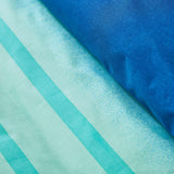 Cool meets colourful with this fully reversible duvet set features a blue to green Ombre background overlaid with playful co-ordinating stripes and flip it over for a soothing all-over Ombre reverse. Created from easy-care recycled polyester and soft responsibly sourced cotton, blended together for everyday use.
