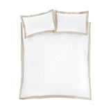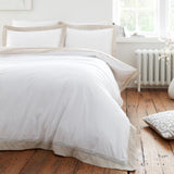 Where timeless charm meets contemporary allure, this bed linen set exudes understated sophistication. The soft base is accentuated by oxford style pillowcases adorned with an inset floral lace trim, adding a delicate touch of grace to your bedroom. Crafted with care from soft and comfortable pure cotton, in luxury 200 thread count, to enhance your sleep experience