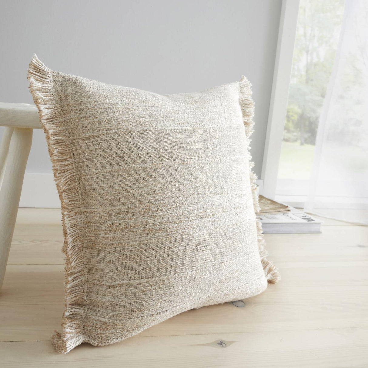 Bring rustic texture and pattern to your home with this pair of Cotton Jute blend cushion. Finished with fringe edge detailing to complete the look.
