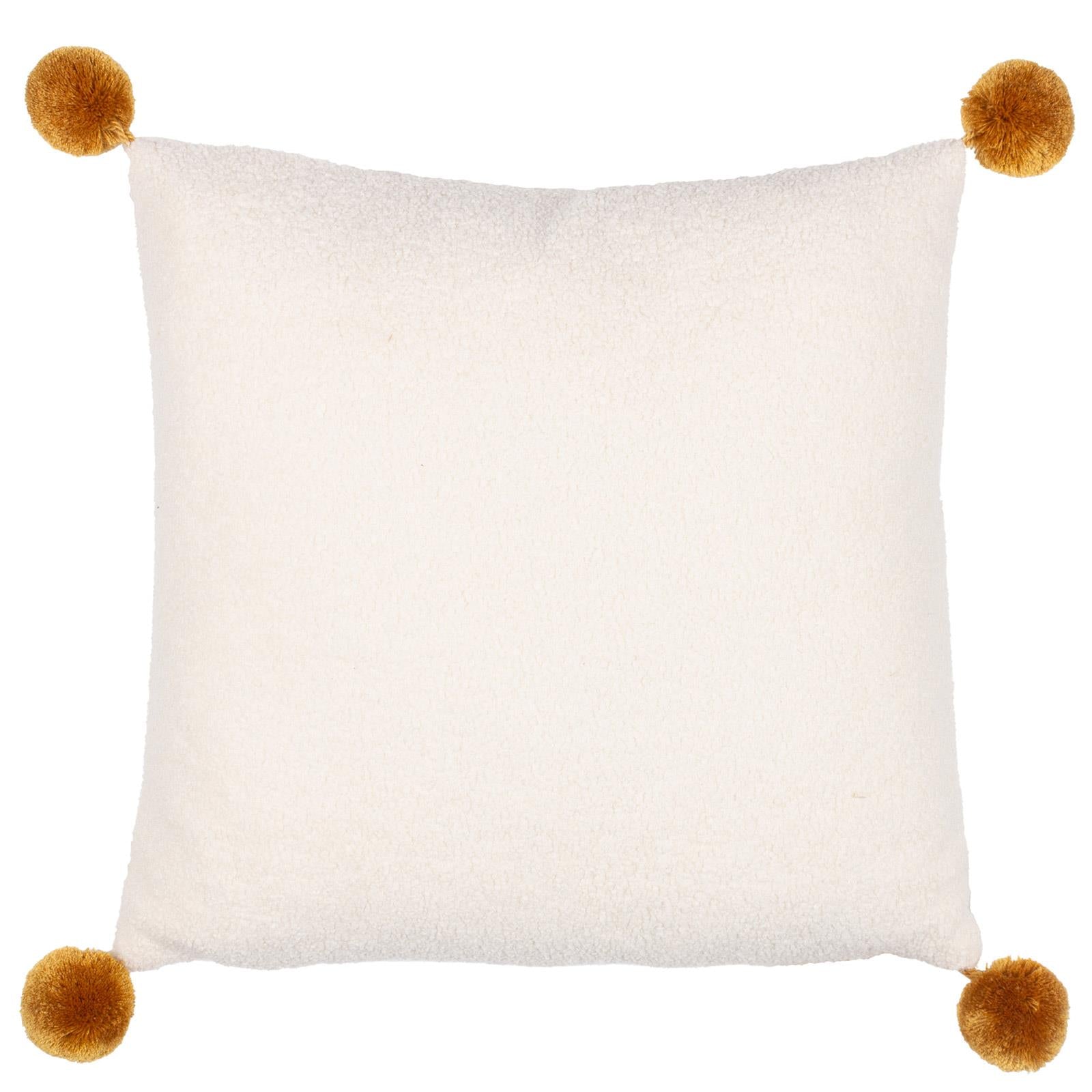 • Complete with pom pom trim on each corner, a plain boucle reverse and zip fastening