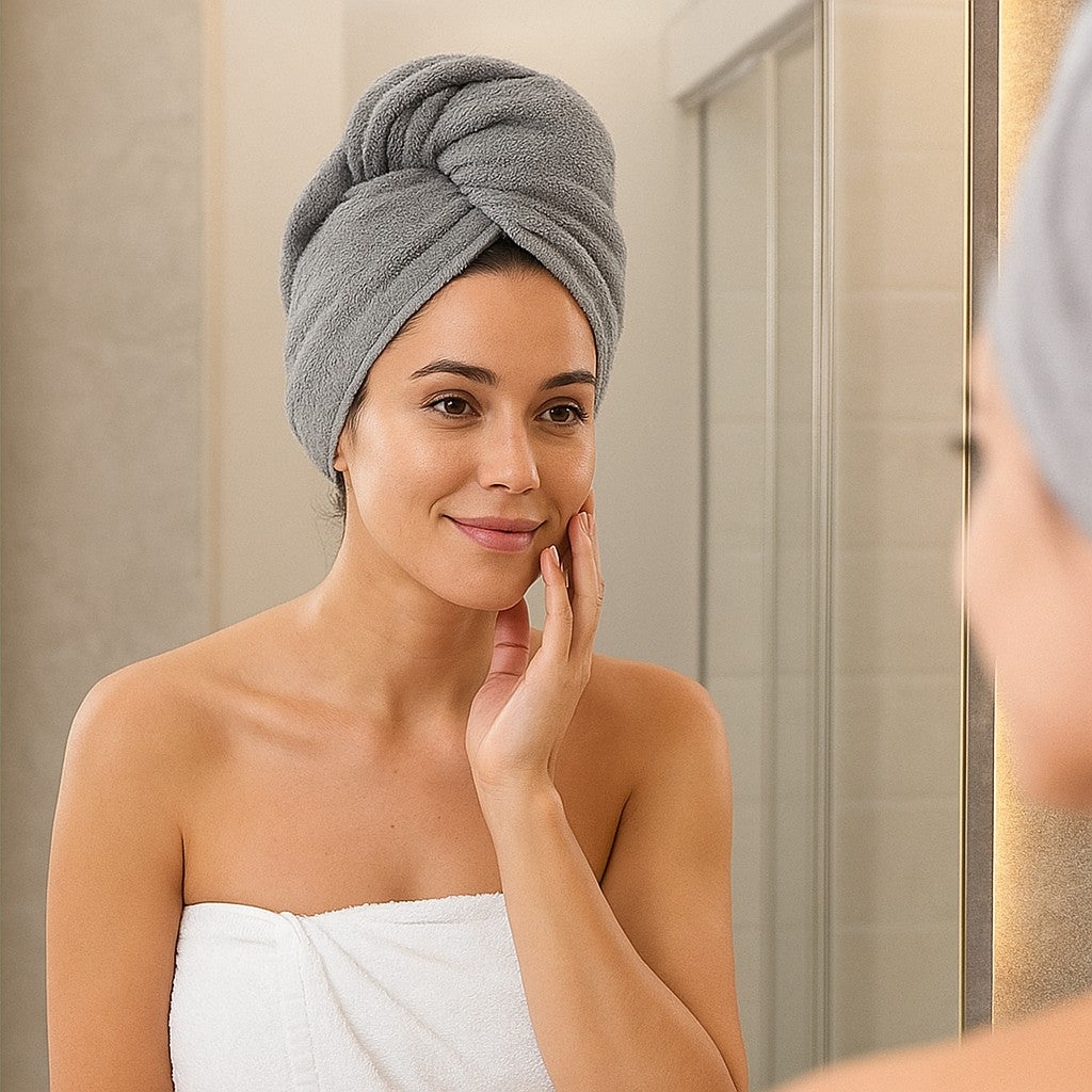 Discover the ultimate everyday essential with our quick dry cotton hair towels, designed to elevate your post-shower routine. These towels are perfect for keeping your hair securely in place, thanks to their innovative button fastening. Crafted from 100% cotton with a luxurious 400gsm finish, they offer superior absorbency and comfort, making them an ideal companion after a bath or shower.