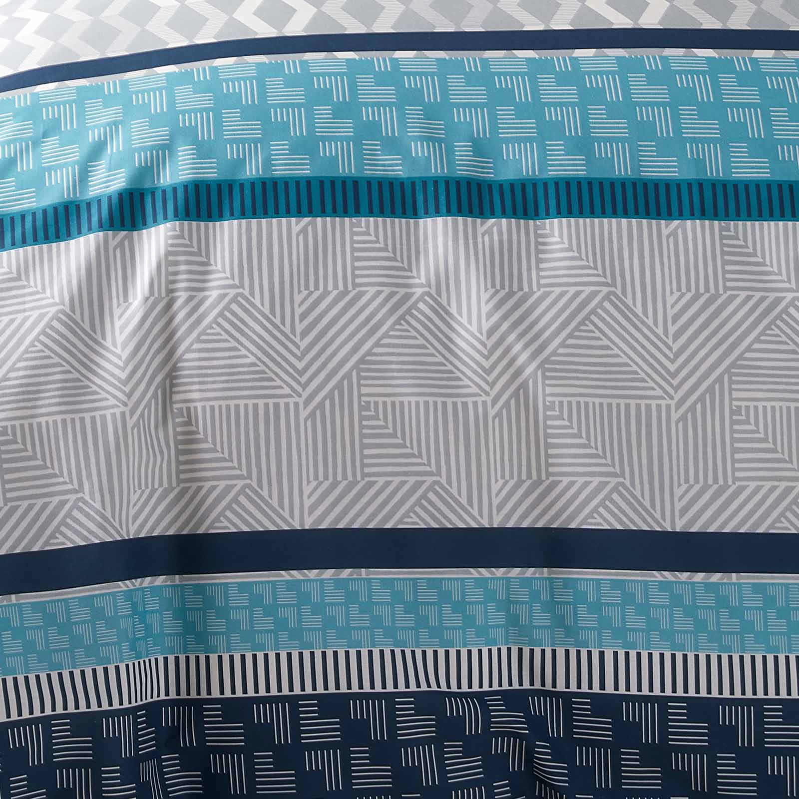 Add a splash of colour to your bedroom with this stunning duvet cover set from Fusion. Featuring various geometric patterns enhanced with bold hues, this bedding collection creates an eye-catching horizontal banded design that effortlessly elevates your space. The easy-care polycotton fabric ensures comfort and durability, while the striking geometric design on the reverse adds an extra layer of style.