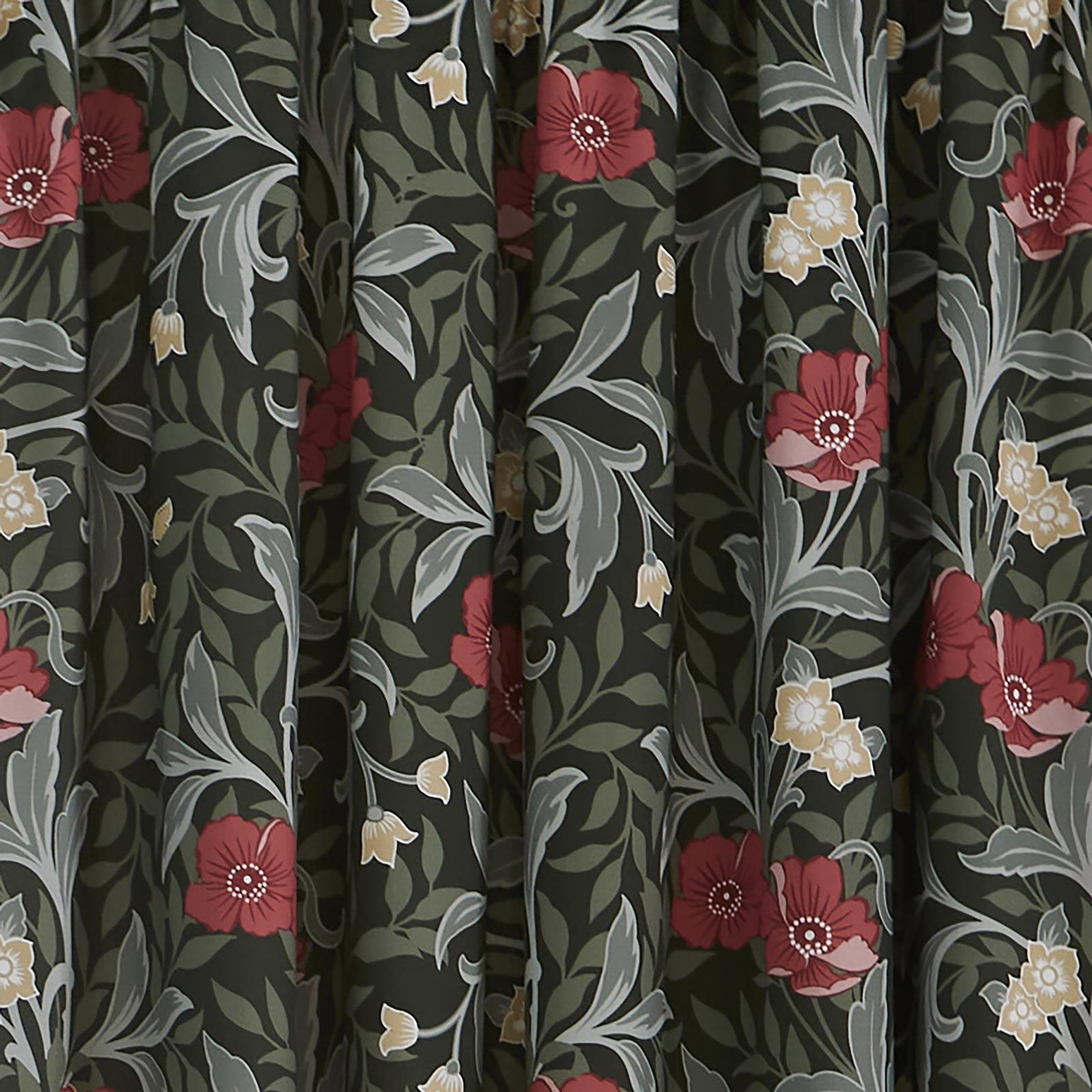 Add a regal quality to your windows with these beautifully designed tape top curtains inspired by classic William Morris patterns. Featuring gorgeous, rich tones and an elegant scrolling floral design, these curtains will effortlessly elevate the ambiance of any room. Fully lined for a luxurious finish, they come with a 3” pencil pleat tape heading style that allows for easy hanging and a polished look. To enhance their versatility, the curtains include a pair of tiebacks, enabling you to dress them neatly when drawn open.