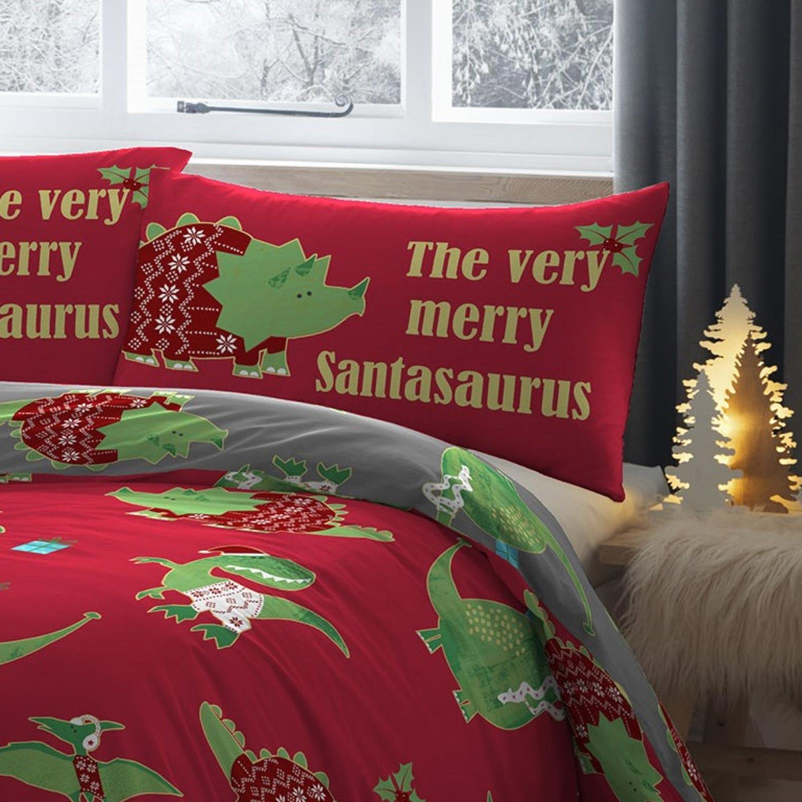 Dinosaur crazy kids still love Christmas, and this fabulously fun bedding set combines the seasonal and the prehistoric in an irresistible style! Lovable cartoon dinosaurs take a starring role, while festive details help build the Christmas mood. It’s fully reversible too – so two colour choices for the price of one.