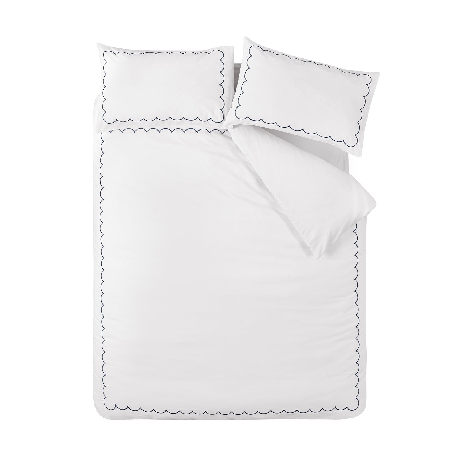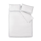 Transform your bedroom into a serene retreat with this elegant bedding set, showcasing a delicate scalloped border that infuses sophistication and charm into your space. The timeless design creates an inviting atmosphere, making it a perfect addition to any décor style. Crafted from a blend of easy-care recycled polyester and soft cotton, this bedding set is designed for everyday comfort and durability.