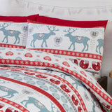 Charming scandi inspired duvet set featuring reindeer and hearts banded down the duvet cover giving a real Christmassy feel.