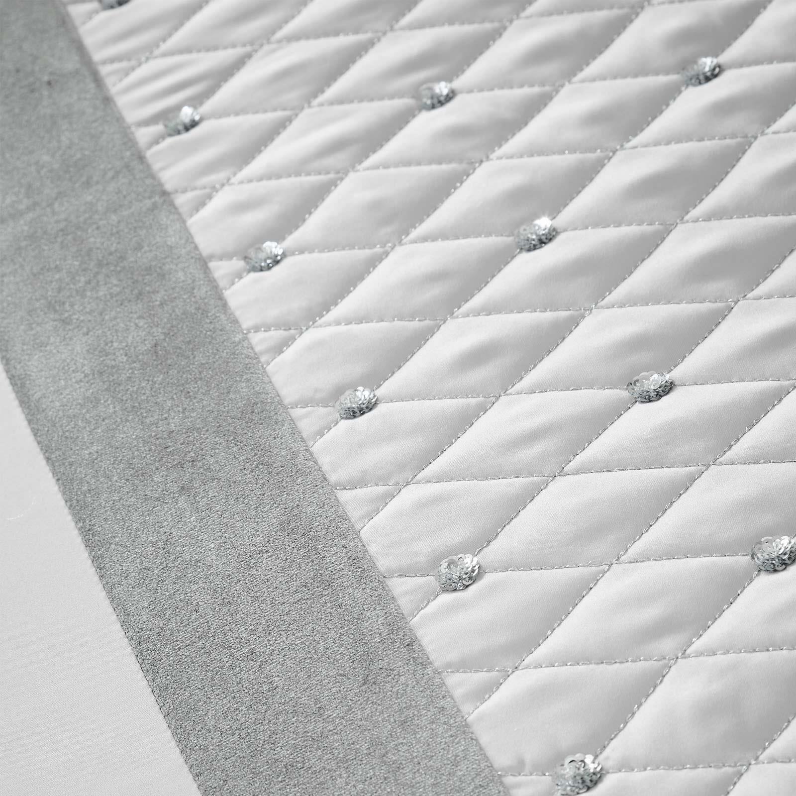 Transform your bedroom into an elegant sanctuary with this luxurious bedspread, featuring exquisite quilted panels and sparkling sequin embellishments. Available in a stylish palette, this bedspread adds a sophisticated touch to your décor, making it the perfect centrepiece for any master bedroom.