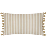 Bring a touch of playful nature into your home with the Sanderson Sessile Leaf cushion. This charming cushion boasts a handcrafted-look oak leaf design on a textured fabric, beautifully complemented by a subtle spotted background. Flip it over to reveal a stylish pinetum stripe pattern, offering versatile styling options. Adorning the edges are captivating pom-pom trims in complementary colours, adding a delightful tactile element. Perfect for layering with a cosy throw, this cushion is sure to add character and comfort to your furniture.