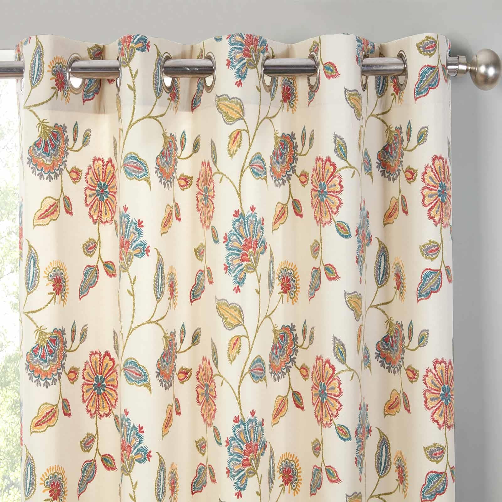 Shelley features a clever embroidery stitch design that truly looks like the real thing. Printed on a clean ivory ground in lovely tones of red, blue and green and finished with an eyelet heading for a modern twist, matching cushion covers are available to complete the look.