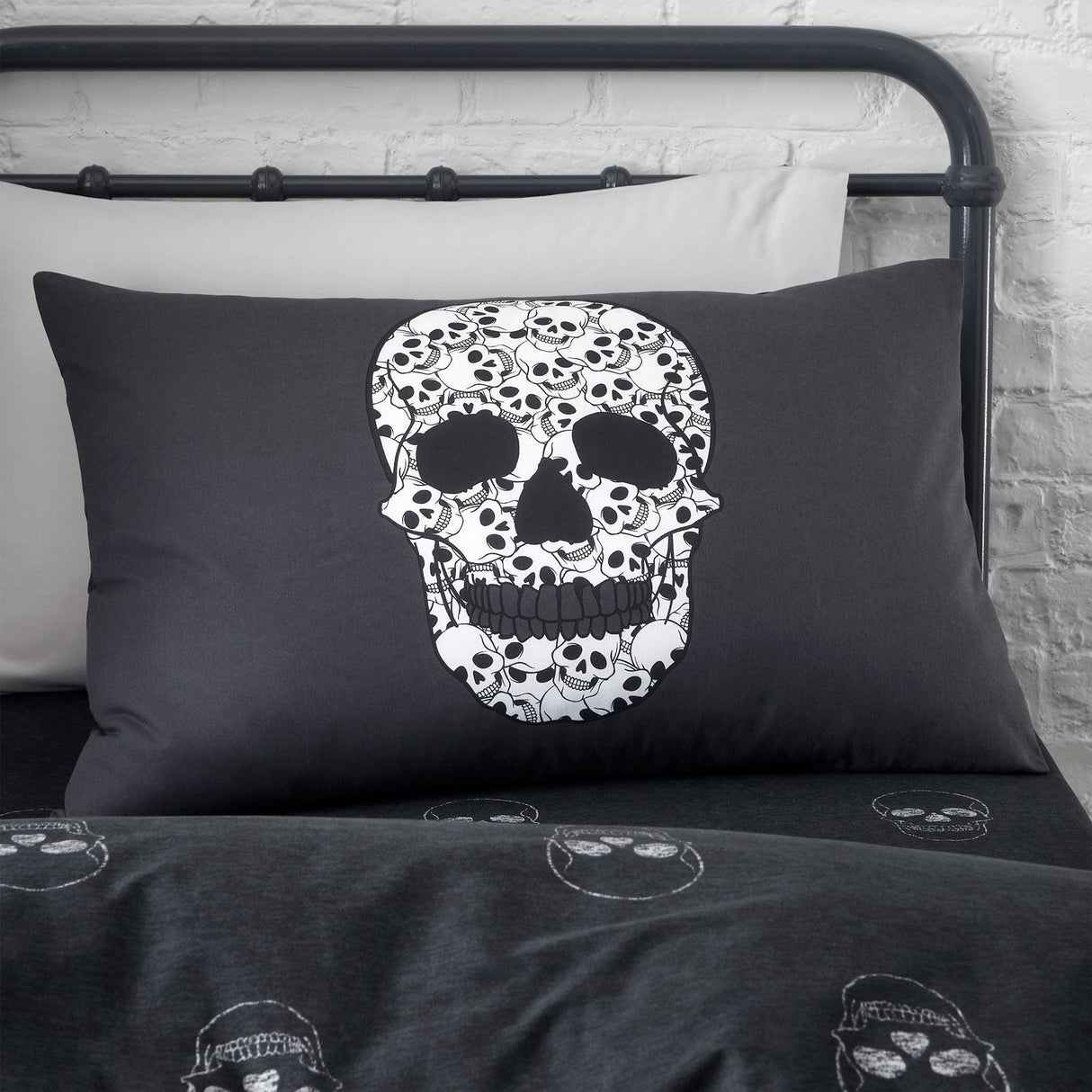 Perfect for little ones who love to stand out. This striking skull design is set on a cool black background which is sure to add a touch of attitude to any bedroom. The fully reversible design allows for versatile styling with a smaller-scale textured pattern on the reverse for a more understated look.