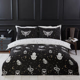 Introducing our bewitching Halloween Gothic Magic bedding set where enchantment and darkness intertwine to create an ambience that is both mysterious and captivating. This unique bedding ensemble is designed to transport you to a realm where the macabre meets the magical, casting an alluring spell upon your bedroom decor. At the heart of this hauntingly beautiful set is the mesmerising hamsa hand along with a collection of eerie elements that evoke the spirit of Halloween.