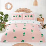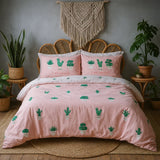 This fresh and funky quilt set is printed on 180 thread microfibre making it cosy and gentle against your skin and also non-iron and durable. Featuring adorable cactus and succulents with smiley faces and the slogan 'I will Survive' on the pillowcase. This will bring a smile to all plant lovers out there.