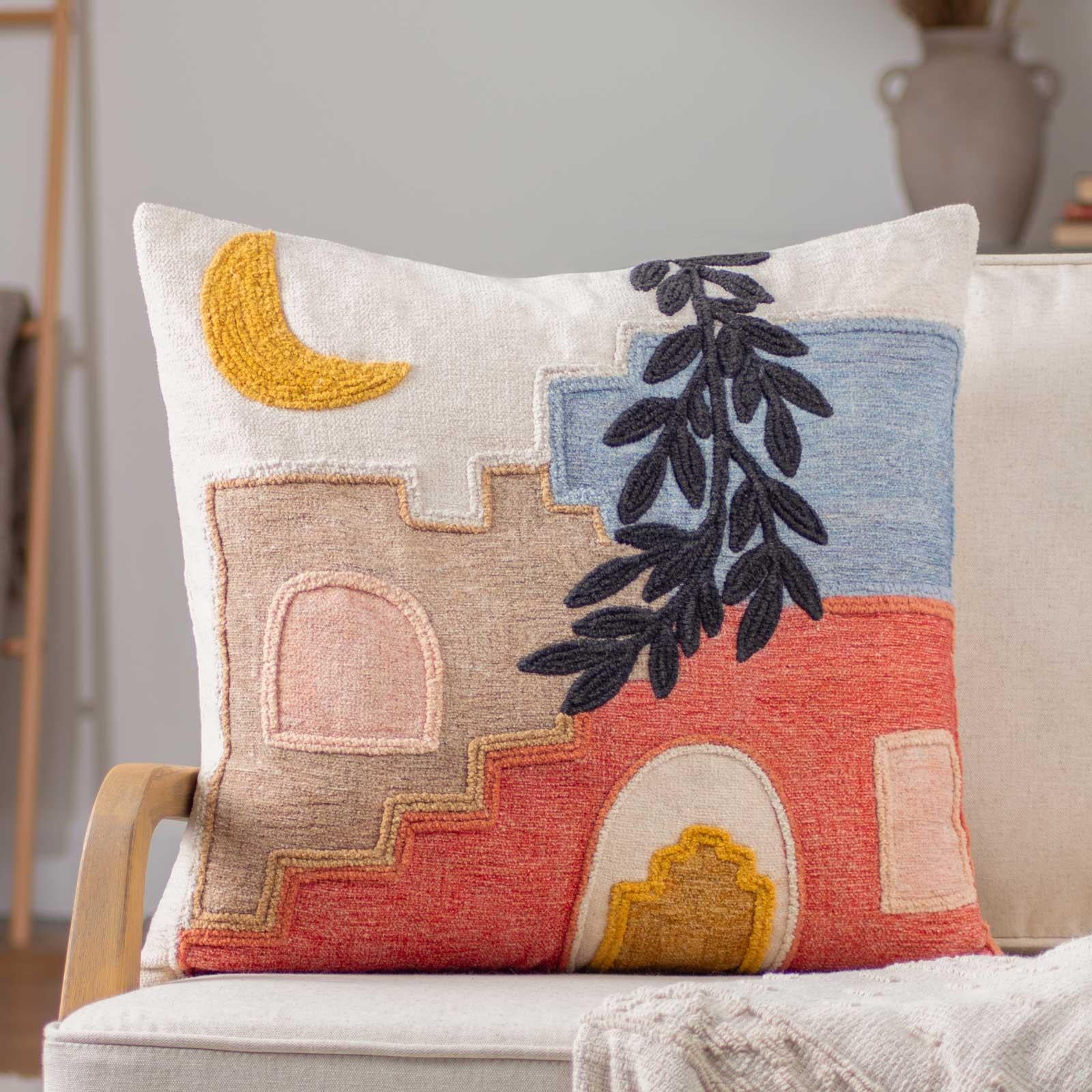 Lay back and reminisce about those summer holiday vibes on the Med with the relaxing Souk cushion cover. Printed on soft cotton in pleasant pastel tones and layered with sophisticated embroidery, this calming piece takes you back to those happy times.