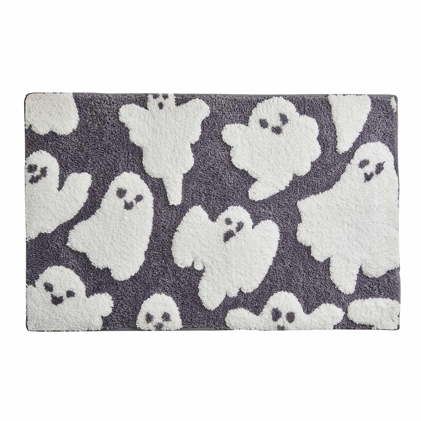 This grey bath mat features a playful ghost design, bringing Halloween vibes to your bathroom. Made from 100% polyester pile, it's soft, comfy and washable. Plus, the non-slip coating keeps you safe from any ghostly slip ups.