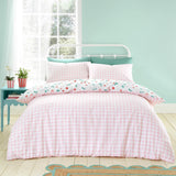 Sweet and charming, strawberries delicately interweave with green foliage to create a feast for the senses. Fully reversible with a complementary gingham check for a fresh and playful charm. Created from easy care recycled polyester and soft responsibly sourced cotton, blended together for everyday use.