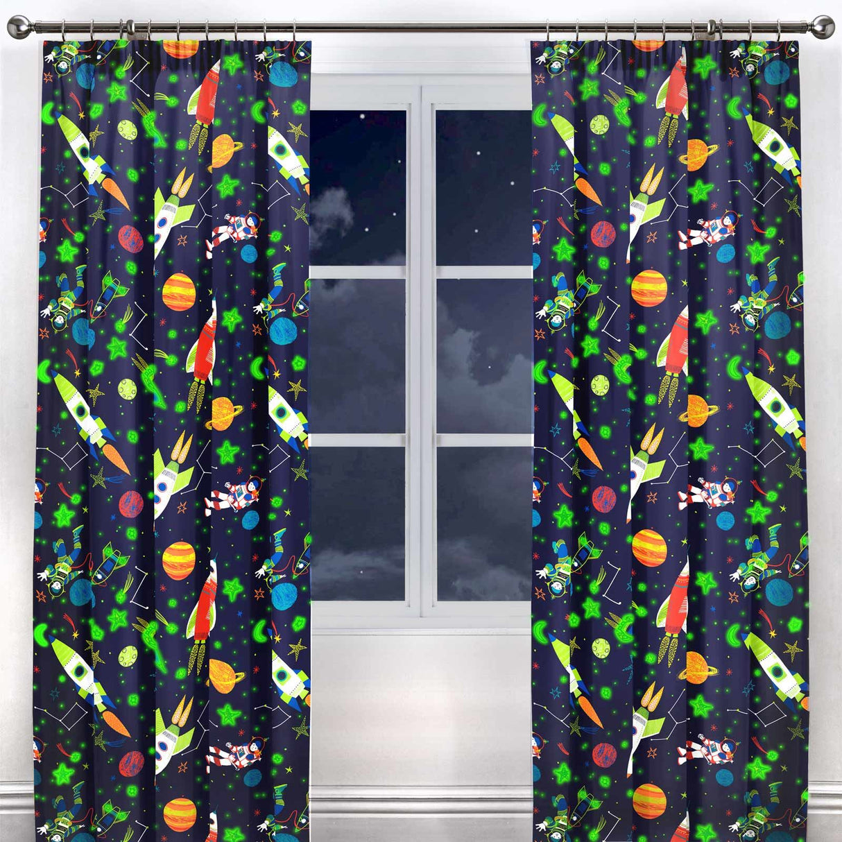 Explode into space and float amongst the stars with this fantastic and fun curtain pair.