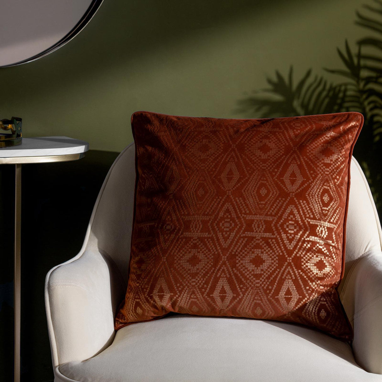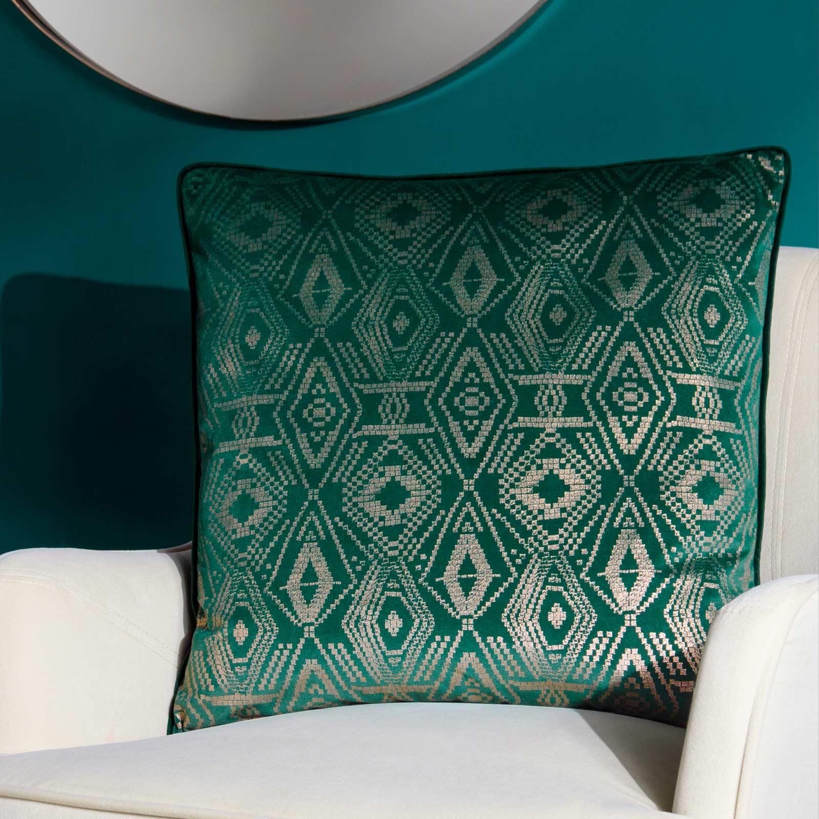 Transform your living space with our stunning metallic velvet cushion covers, designed to captivate and enhance your home décor. Each cover features a mesmerizing diamond-shaped foil printed pattern that sparkles beautifully in the light, set against a bold jewel-toned velvet background. This exquisite design is framed by a matching piped trim, a hidden zip closure, and a soft velvet reverse, adding a touch of elegance and sophistication to any room.