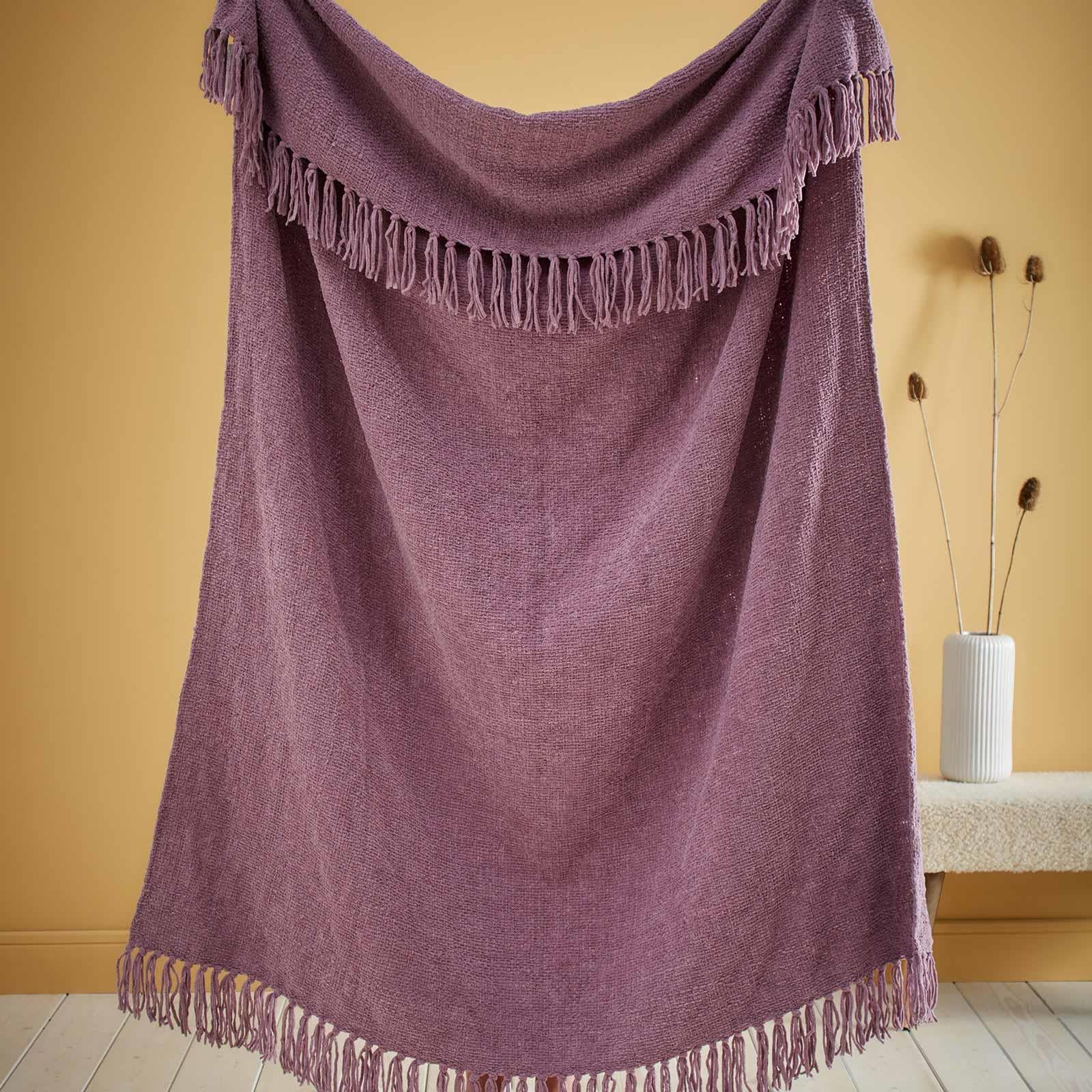Get ready to snuggle up in style with our oh-so-soft textured chenille throw. This cosy companion features a plain dye chenille design that exudes a playful charm, beautifully adorned with tassels at both the top and bottom. Perfectly blending comfort with boho elegance, this throw adds a touch of effortless style to any living space. Whether you're curling up on the couch or adding a layer of warmth to your bed, this throw invites you to wrap yourself in its luxurious embrace and enjoy the delightful imperfections that make it uniquely yours.