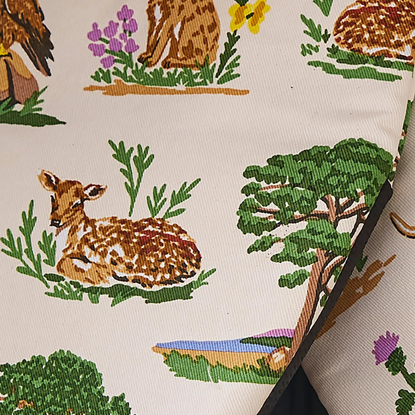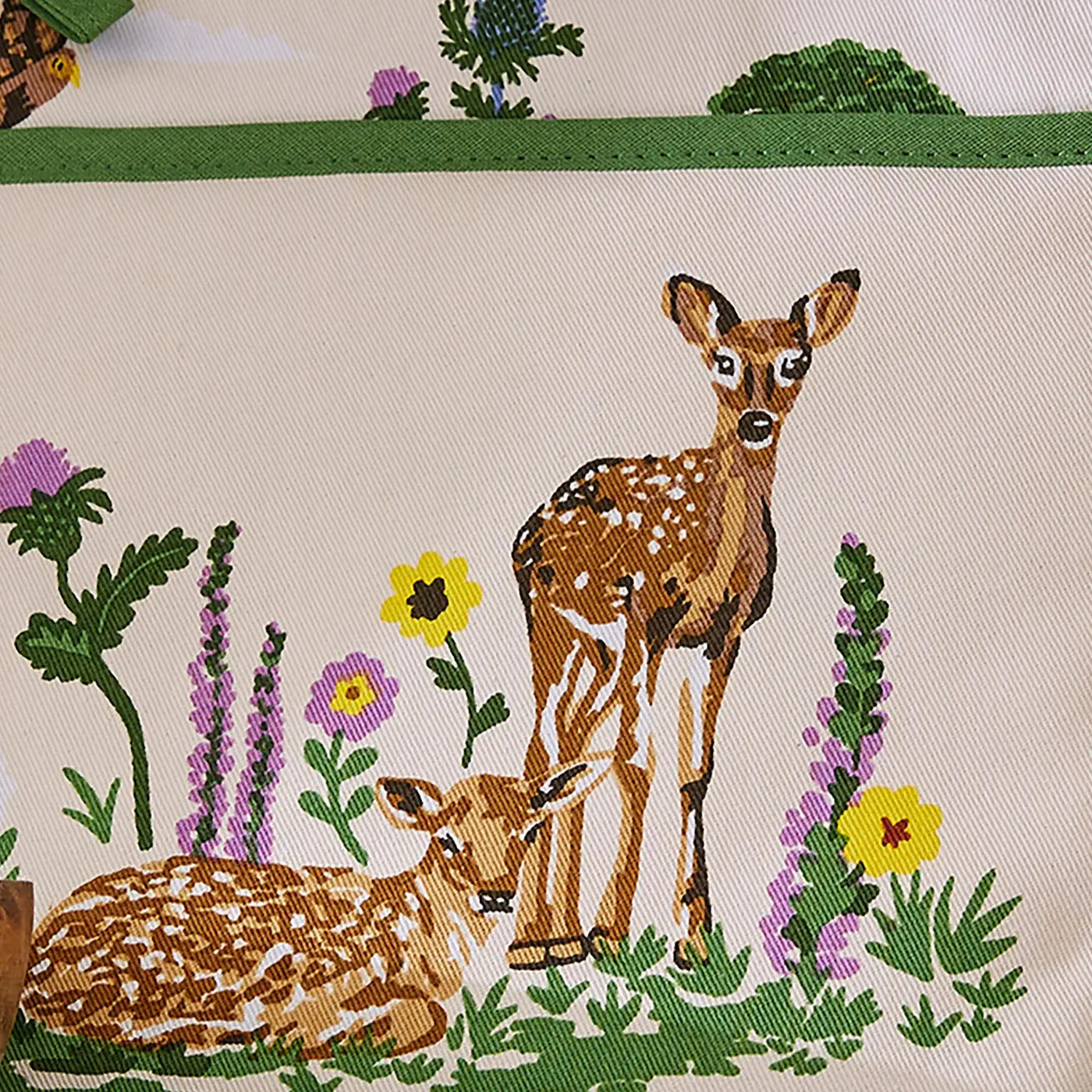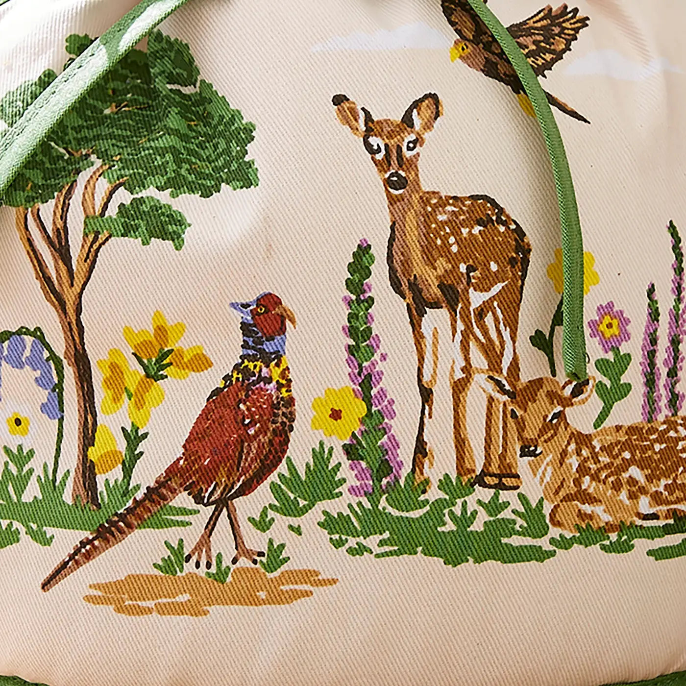 - Features Thistlewood print with floral and bird details in green tones