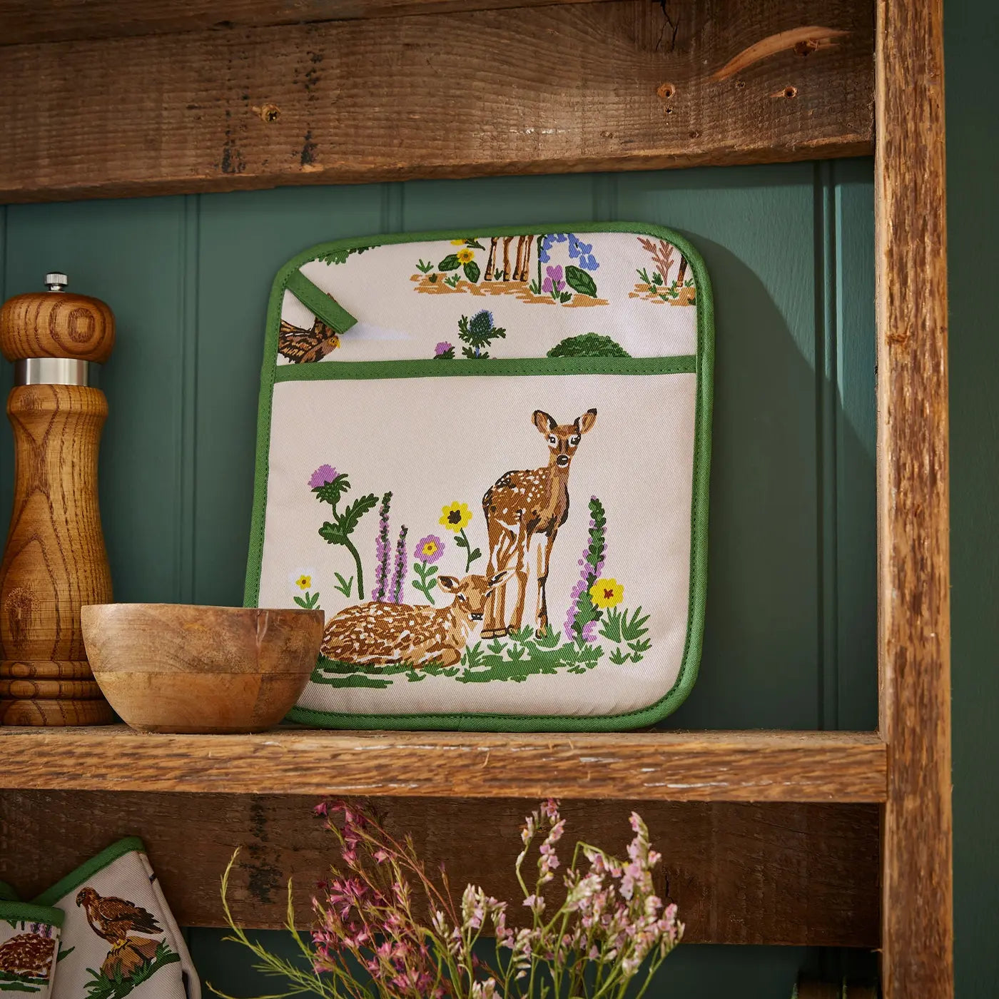 Bring a bit of the British countryside into your home with the Ulster Weavers Thistlewood collection. This range of kitchen textiles and accessories uses a nature inspired design to create a welcoming heart of the home. It features birds, trees, and farmyard motifs on a refreshing green background.