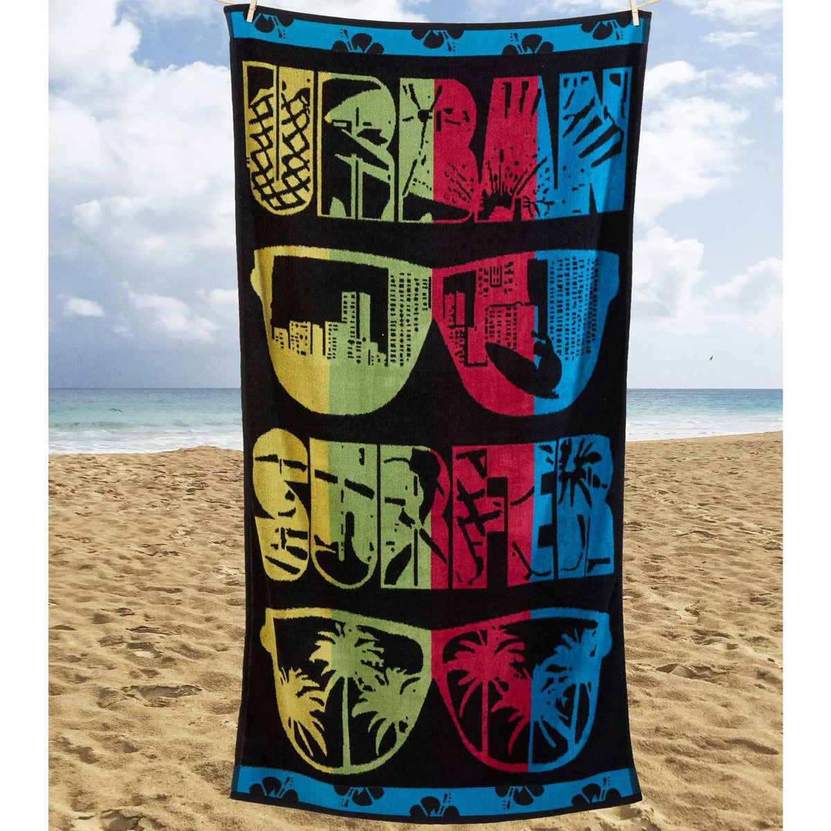Introducing the Beach Life range of towels from Rapport Home. Crafted from ultra absorbent cotton rich material to enhance your beach and poolside experience. Featuring bold vertical stripes and a sunglasses silhouette with the words 'Urban surfer', this towel is not only functional but also visually appealing and the bright gradient design creates a refreshing and vibrant look that is sure to make you smile. Whether you're lounging by the pool or enjoying a day at the beach, our beach towels add a touch of style to your relaxation.