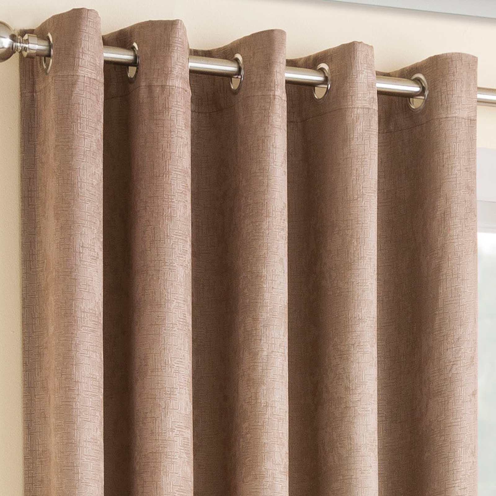 Transform your living space with our elegant woven thermal eyelet curtains, designed to enhance both style and comfort. Featuring a sophisticated embossed textured design and a practical eyelet header, these curtains are crafted from three cleverly interwoven layers. One of these layers incorporates a black thread woven into the center, effectively blocking out light and providing excellent insulation. This innovative construction eliminates the need for a separate lining, allowing for a soft, elegant finish that drapes beautifully without bulk.